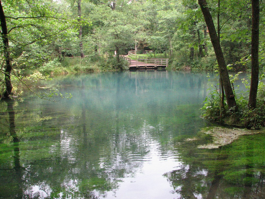 blau-grüne Farbe. Grundlos erscheint die Quelle nur.