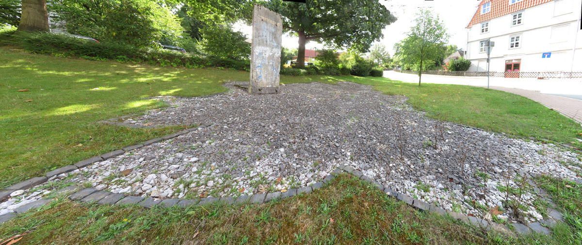 Mahnmal an vergangene Zeiten. Der Stein soll ein Teil der Berliner Mauer