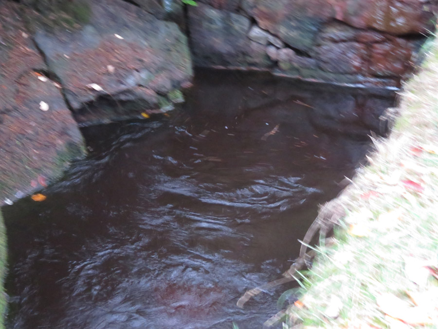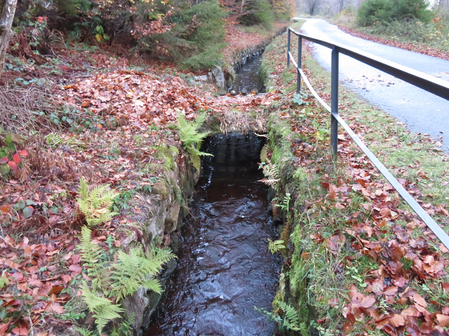 Das Wasser läuft neben dem Weg ab.