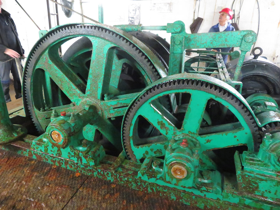 Seile, die je nach Laufrichtung auf- oder abwärts gewickelt werden.