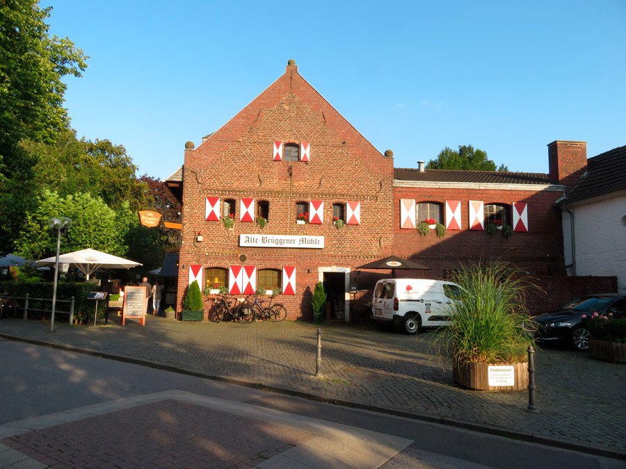 Und gegenüber ergänzt die alte Brüggener Mühle die