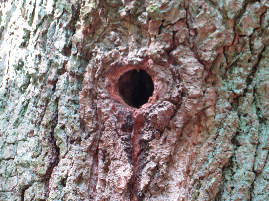 Der Laie geht natürlich an diesem Spechtloch vorbei, aber der