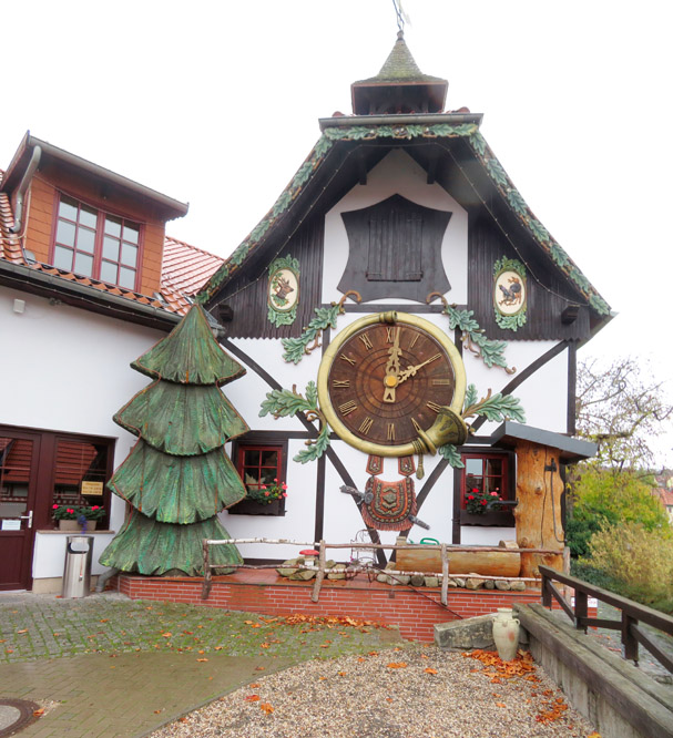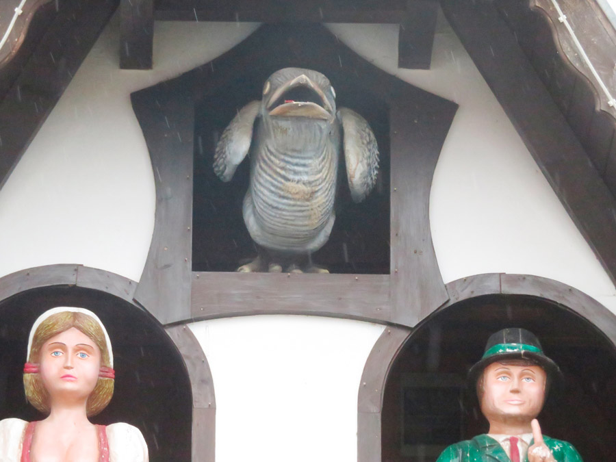 davor die größte Kuckucksuhr außerhalb des Schwarzwaldes, die noch in