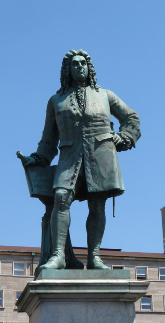 des Marktplatzes steht das Händel-Denkmal von 1859.