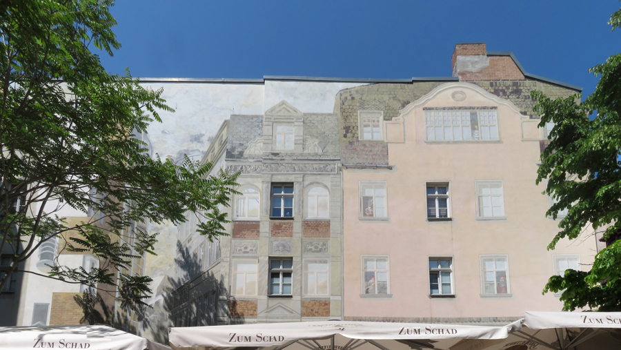 Wandgemälde verschönert eine eigentlich schmucklose Wand.