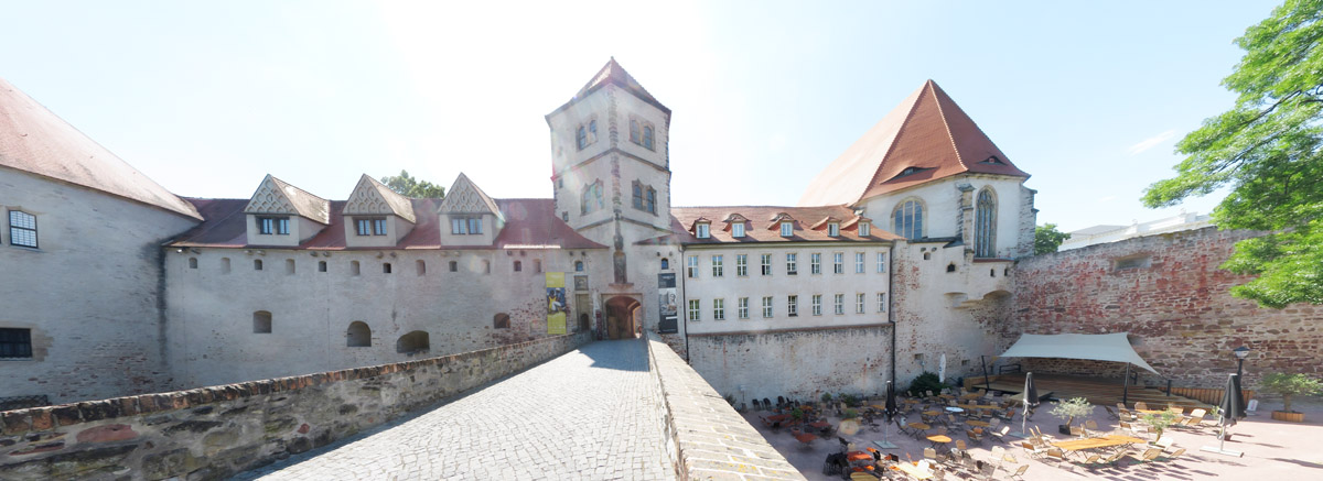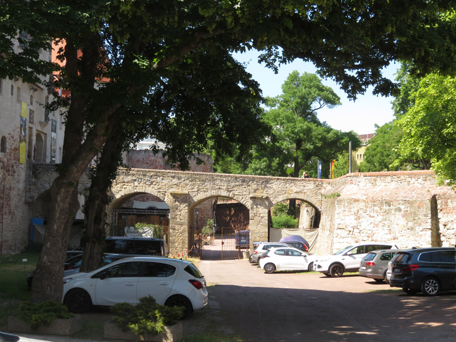 die Burg im Besitz der Stadt Halle. Die Unterburg ist einigermaßen