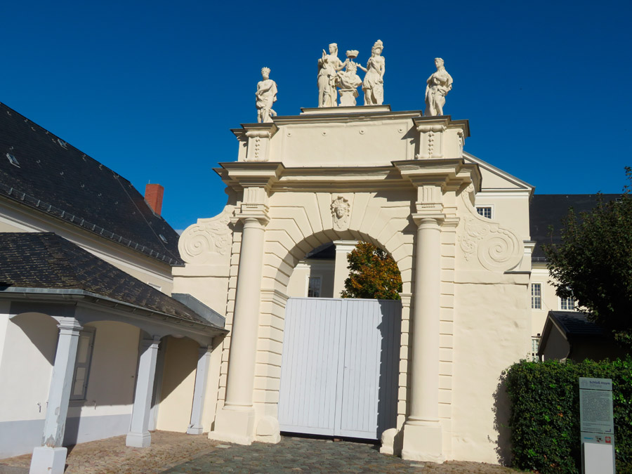 Nach Durchschreiten des Portals läuft man auf den Hauptflügel zu.