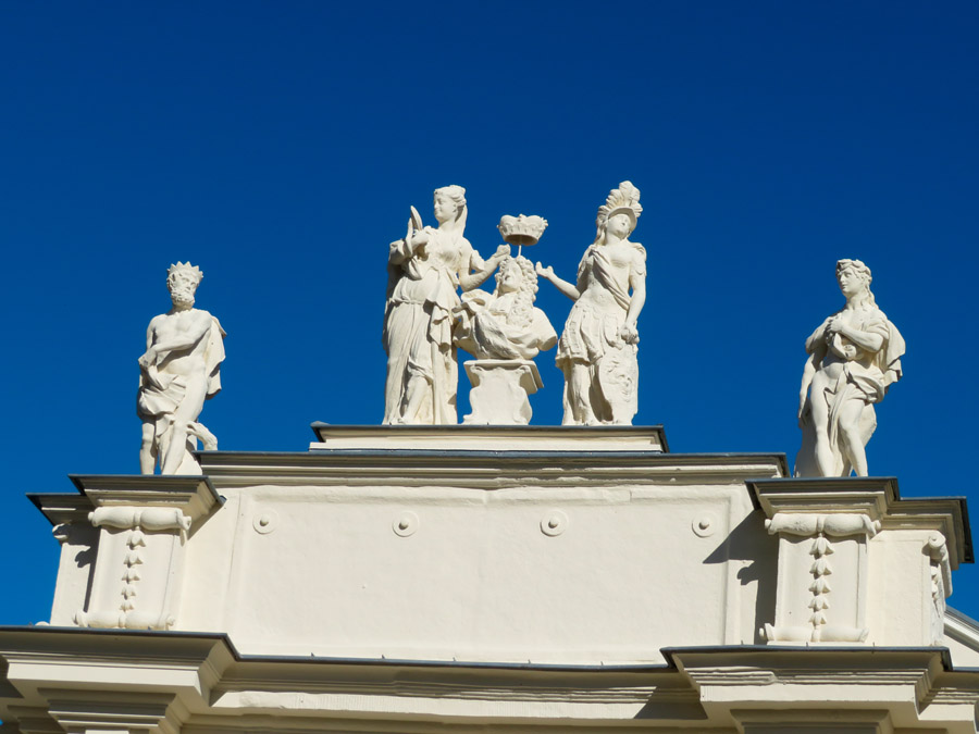 Das barocke Portal ist "bekrönt durch eine Halbfigur des Fürsten Victor