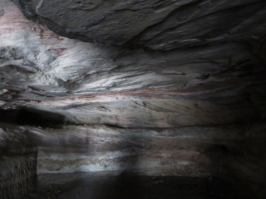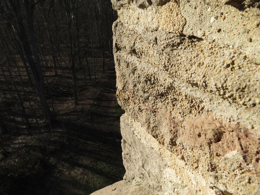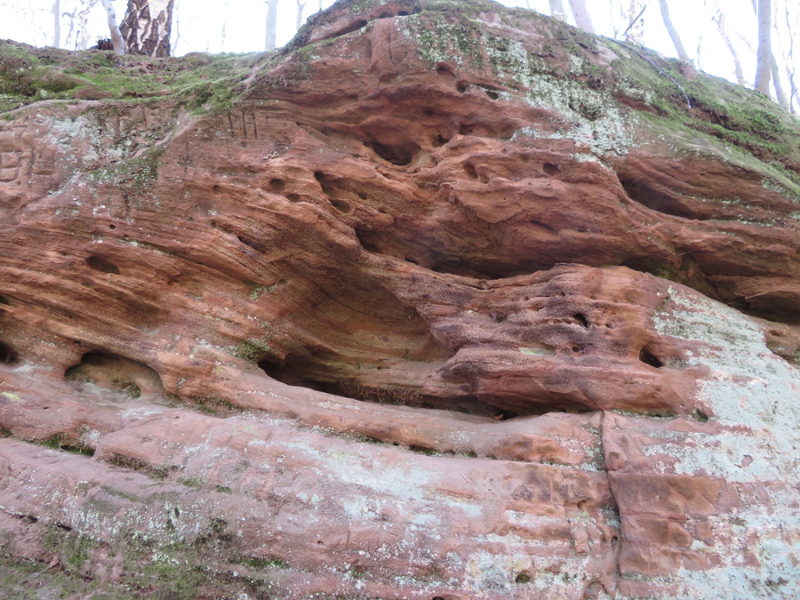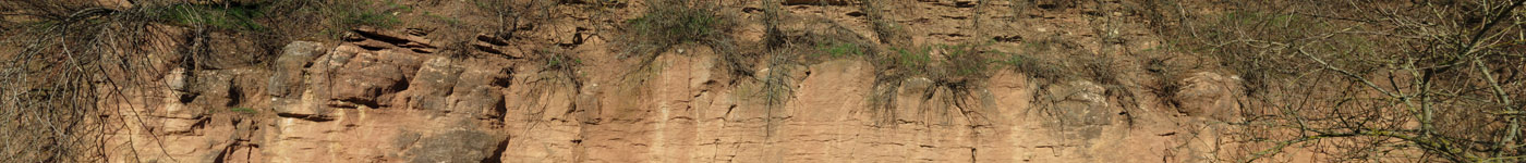 Buntsandstein gibt es unten Löcher, die vermutlich für Balken