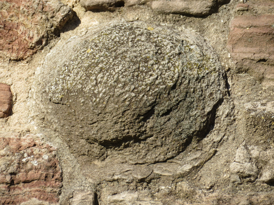 eingebauter Stromatolith. Sein früheres Aussehen ist nicht mehr zu