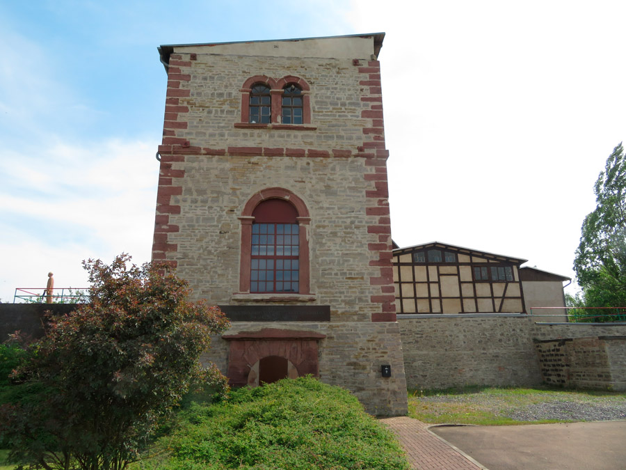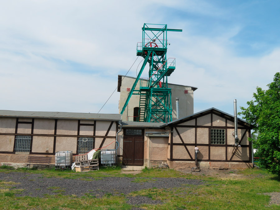 wurde von 1844 mit diesem Fördergerüst in 184 m Teufe Kupferschiefer