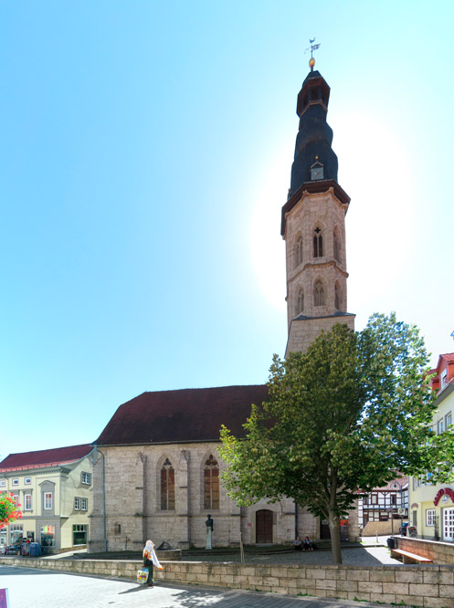 Die zweitgrößte Kirche (86,7 m hoher Turm) Thüringens, die Marienkirche,