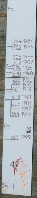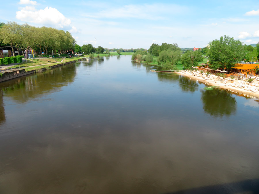 Aber die Weser bringt auch Probleme. An der Weserbrücke zeigt eine Tafel