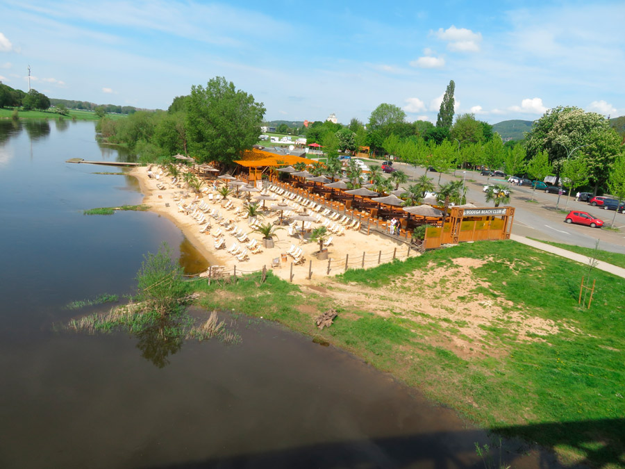 Weserstrand wurde ein Beach Club eingerichtet. Auch an einem sonnigen