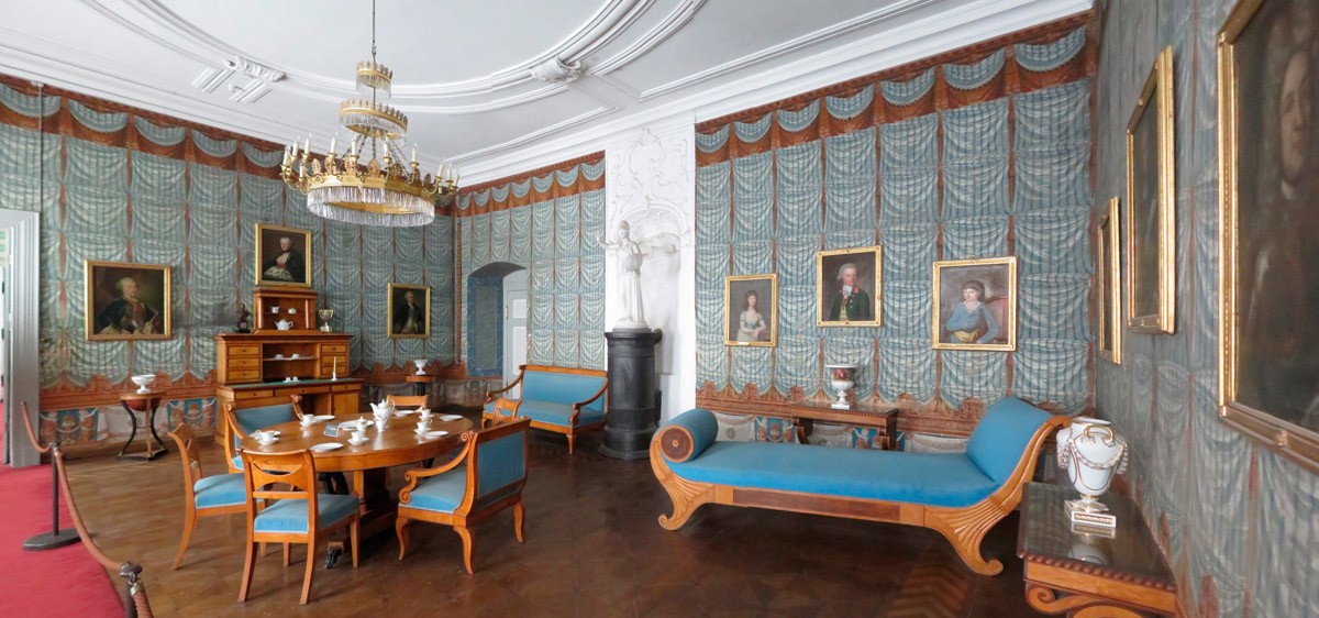 die beiden Gebäudeflügel des Schlosskomplexes.