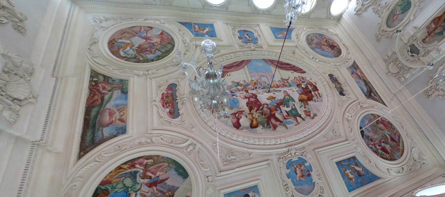 Leidenswerkzeugen Jesu, die Geißelsäule und das Kreuz. In den Nischen
