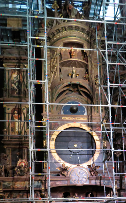Die astronomische Uhr, leider mit Gerüst.