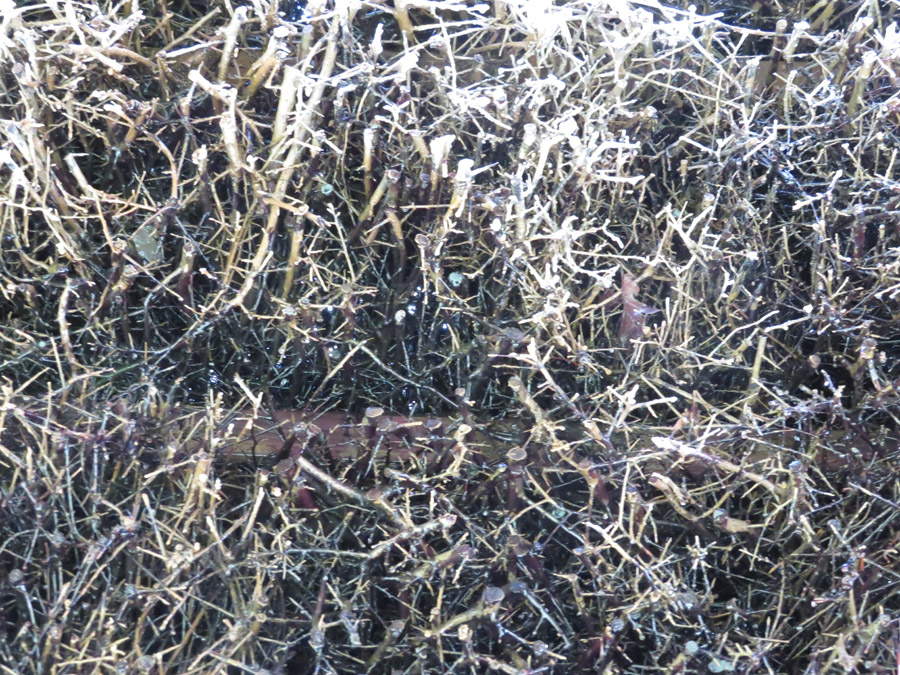 das Astgeflecht aus, wenn die Mineralien wie Eisen u.a. ausgeschieden