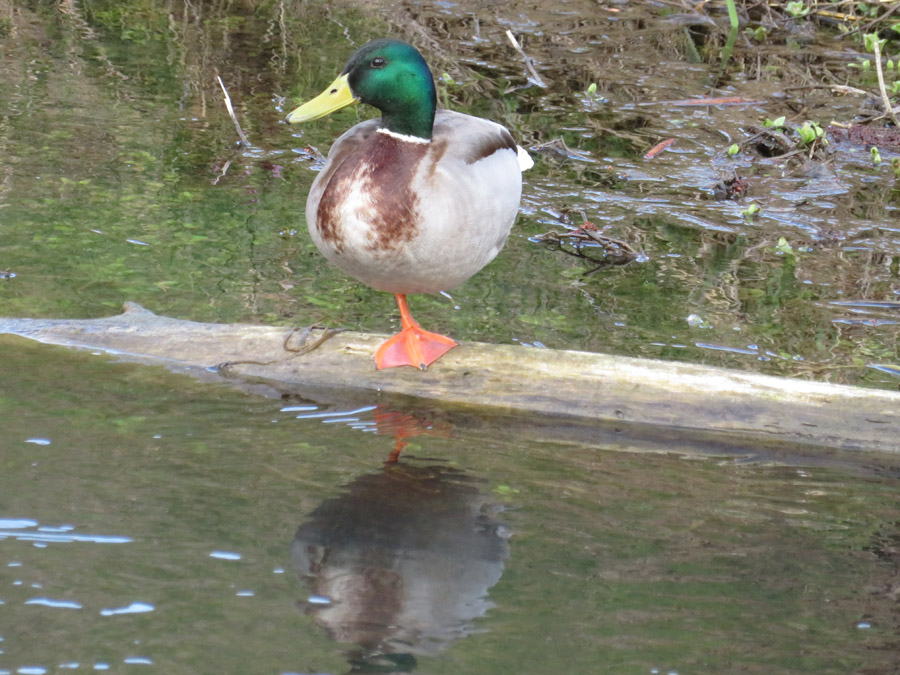 Die Ente trainiert, dass sie ein Flamingo ist.
