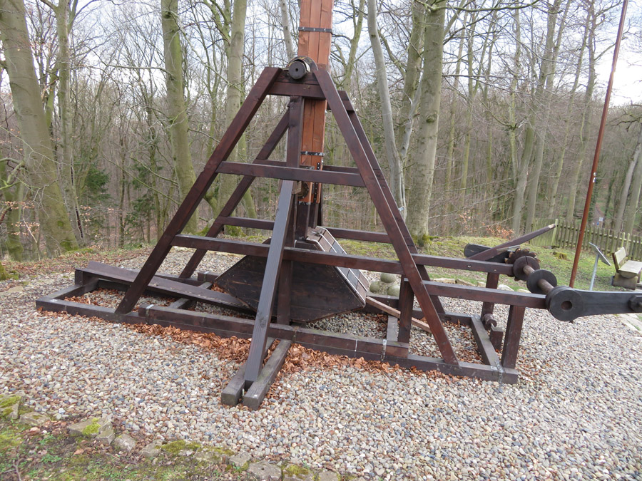 kann man die Funktionsweise einer Steinschleuder begutachten.