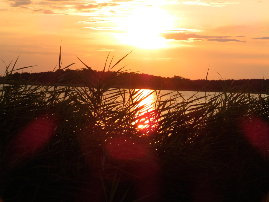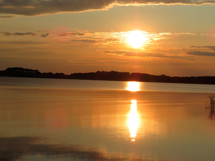 fehlt der Sandstrand. Dafür verlandet der See in Schilfgürteln.