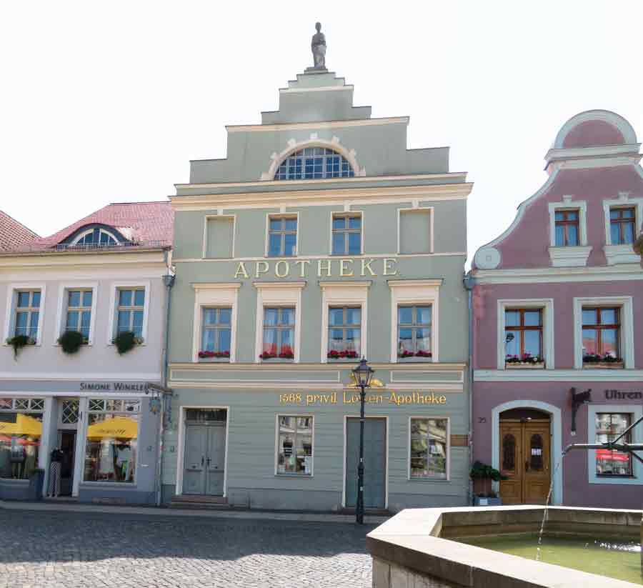Am Markt steht das brandenburgische Apothekenmuseum.