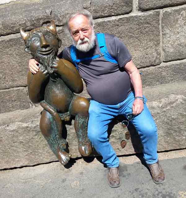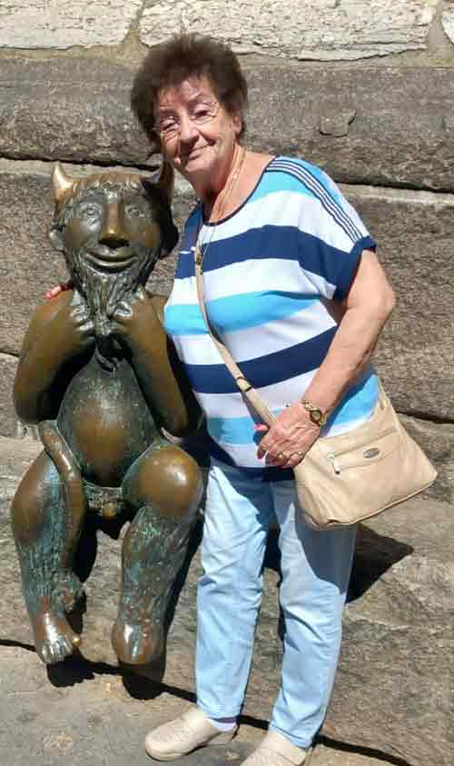 sitzt vor der Marienkirche, wo wir ihn nicht alleine lassen wollten.