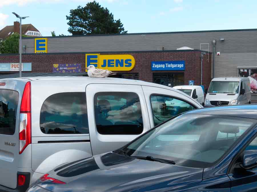 Die Jungmöwe hat es sich dreist auf meinem Auto gemütlich gemacht.