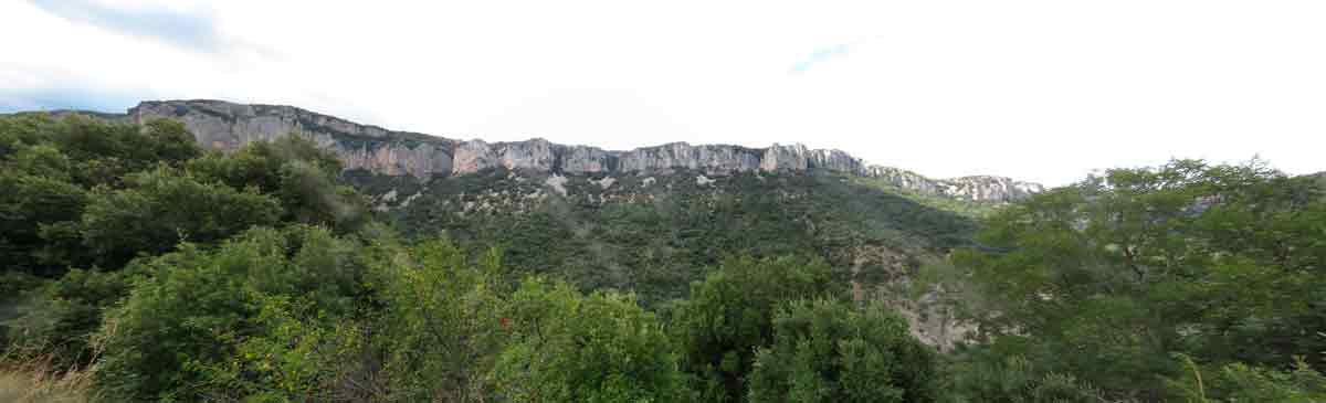 Felswänden herrscht Steineichenwald, der sich dem Rand nähern kann,