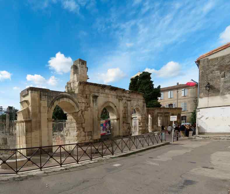 am südöstlichen Rand der Altstadt von Arles. Zwischen den mehr oder weniger erhaltenen