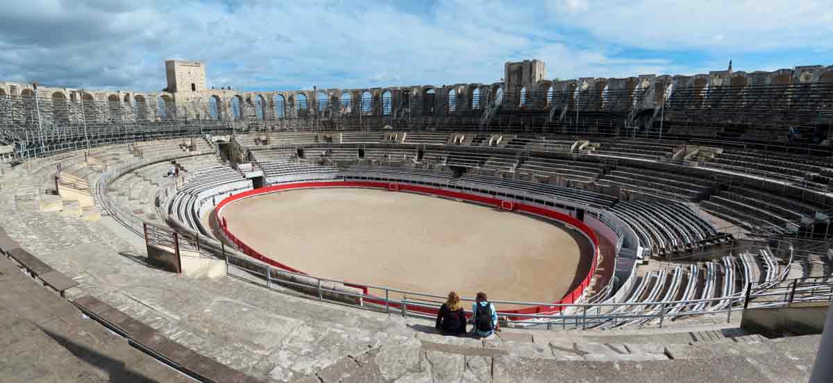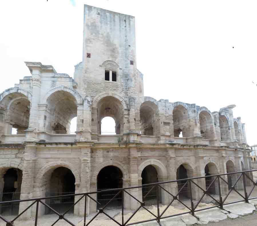 "Das Amphitheater von Arles, um 90 n. Chr. erbaut; Durchmesser 140 m ×