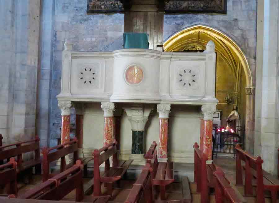 90° nach rechts gedreht steht "die Kirche Saint Trophime. Das am