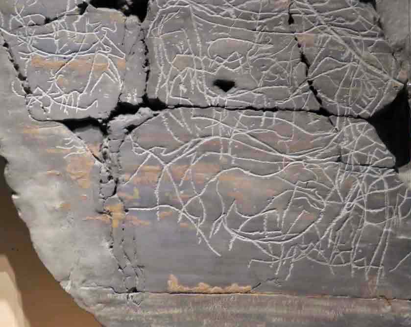 Höhle, die Zeichnungen, Gravuren, Spuren und Knochen haben die Zeit
