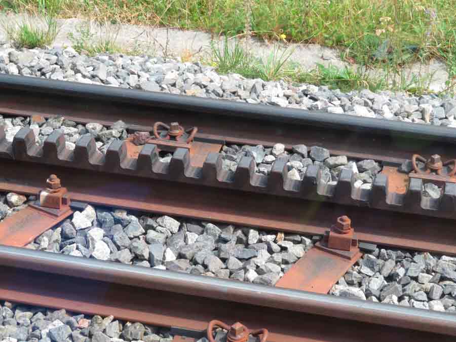Mit diesen Zahnschienen schafft es die Panoramabahn also bis nach oben.