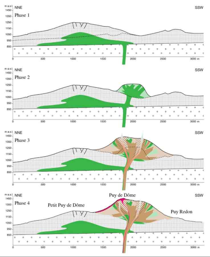 Der Puy-de-Dôme ist durch aufeinanderfolgende