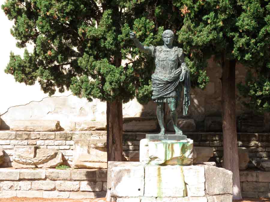 Dafür grüßt Augustus (?) die Besucher der Stadt.