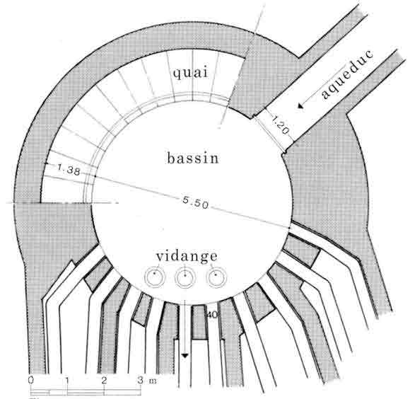 Becken entsprach. Wenn sie entfernt wurden, konnte das Wasser