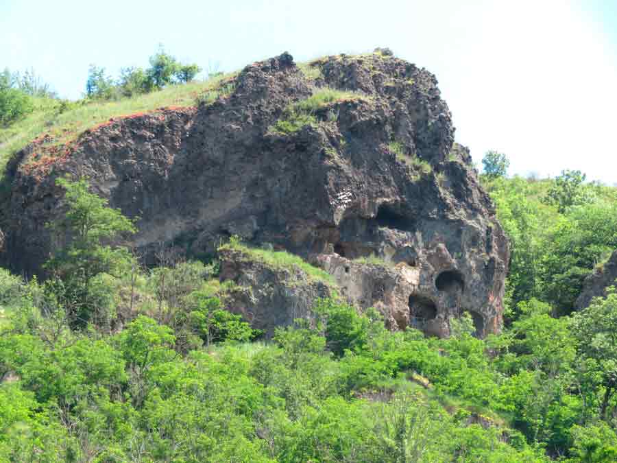 Man sieht, dass der Hügel aus bröckeliger Masse stammt, vulkanischem