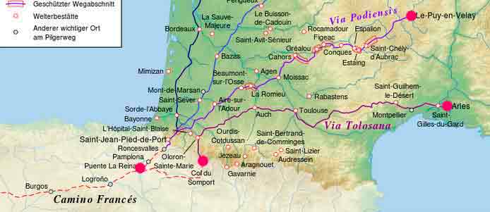 französische Abschnitt der Pilgerroute nach Santiago de Compostela: