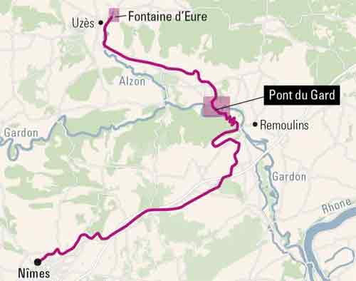 Eure, die für die Versorgung von Nimes in 58,945 m Höhe wichtig waren.