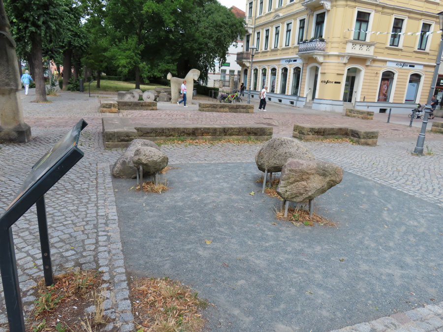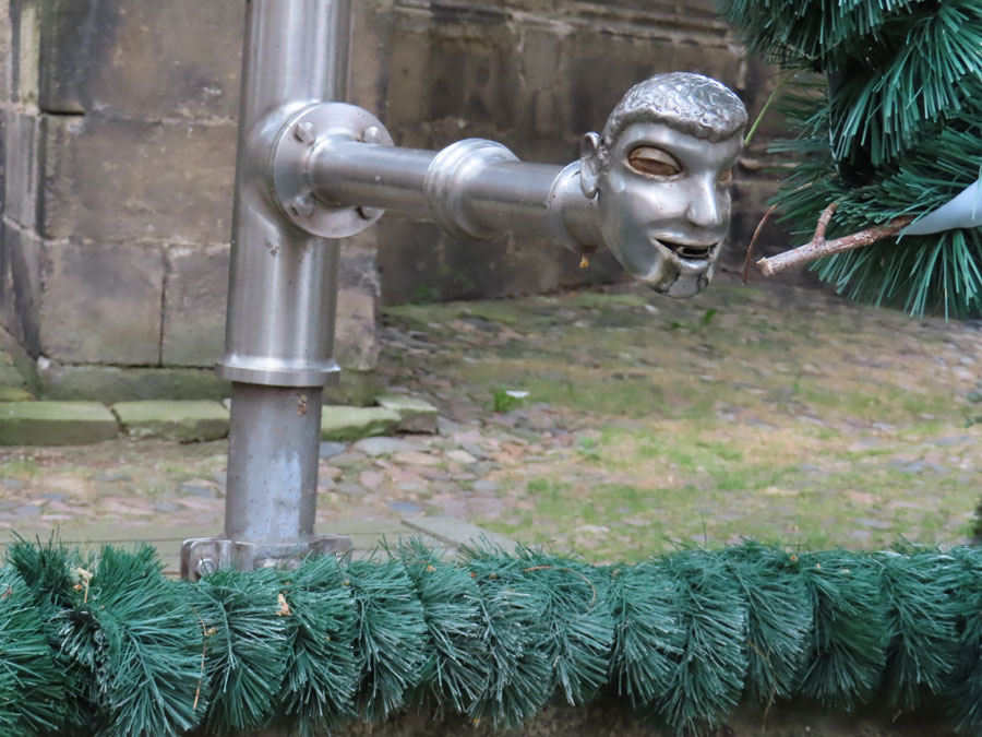eingebaut. Darunter befindet sich das Stadtwappen.